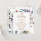 Introducing our minimalist and trendy wedding invitation, featuring a pretty flowers in light purple and green leaves and more, with an elegant background , creating a clean and stylish look for your special day.