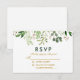 Watercolor Botanical Green Gold RSVP Wedding Card