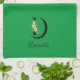 Watercolor botanical green initial monogram tea towel