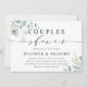 This couples shower invitation features painted watercolor eucalyptus leaves, green foliage, and light blue leaves with stylish calligraphy. For more advanced customisation of this design, please click the Customise Further link to change font, size, and colour.
