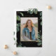 Announce your graduation to family and friends with this customisable photo graduation announcement card. It features watercolor leaves on black background. Personalise this boho photo graduation announcement by adding a photo, name, school and other details. This botanical photo graduation announcement is available in other cardstock.