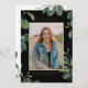 Watercolor Botanical Leaves Black Photo Graduation Announcement