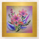 A Watercolor Gouache Bouquet flowers with textures, framed in gold, set against a beautiful colourful backdrop.