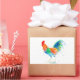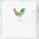 Watercolor painting "Bright Rooster" by the watercolor artist Cheng Jing. Bright and expressive watercolor rooster in yellow, blue green and red.