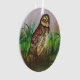 Watercolor Brown Owl with Green Leaves Background Ornament