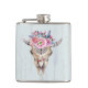Watercolor Bull Skull Flowers And Horns Hip Flask
