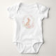 Watercolor Bunny Rabbit Floral Wreath Baby Bodysuit. Celebrate your little one with this adorable watercolor bunny rabbit baby bodysuit. Featuring a cute bunny in a delicate wreath of pink flowers and greenery, this design is perfect for baby showers, Easter outfits, or everyday spring wear.