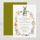 Delight your guests with this enchanting watercolor baby shower invitation featuring a charming circular wreath of adorable woodland animals! A sweet gray bunny in a cozy jacket, playful mouse with bow, cuddly teddy bear, curious fox, prickly hedgehog with bow, rocking chair mouse in a bonnet dress, wise owl, fluttering butterflies, and fresh berries on green leaves create a magical, gender-neutral nursery vibe. Perfect for celebrating a little one's arrival in rustic, storybook style. Fully customizable—add your details easily!