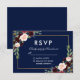 Watercolor Burgundy Blue Floral Gold RSVP Card