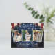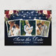 Rustic Blue Wood and String Lights 3 Photo Save The Date Engagement Announcement Card includes Watercolor Burgundy and Pink Blush Floral