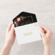 Elegant Burgundy Watercolor Floral Gold Frame All In One Wedding Invitation with RSVP Card includes burgundy roses, pink roses, red roses and botanical greenery. Black background.