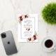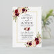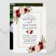 Modern Elegant Watercolor Burgundy Floral Wedding Invitation includes burgundy roses, pink roses, red roses and botanical greenery. Gold Foil Frame. Photo Back.