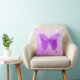 A single, large, watercolor butterfly in shades of deep to soft violet purple on a pastel violet / lavender gradient background throw pillow