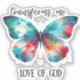 This design features a vibrantly colored watercolor-style butterfly accompanied by the Christian message "The Love of God Transforms Me." It is a visually striking work that conveys faith, hope, and personal transformation through divine love. Perfect as a spiritual gift for women, young people, or people of faith seeking inspiration on their journey. Ideal for t-shirts, mugs, notebooks, and more.