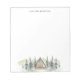 Watercolor Cabin Personalised Notepad features a watercolor illustration of an A-frame cabin, green mountains, and pine trees. Personalise with your name.