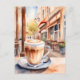 Watercolor, Caffe Latte, Postcrossing Postcard, Postcard, Postcrosser, Postcrossing, coffe, food postcard, drink, coffe addict, AI Generation, generativecontent, adorable postcard
