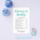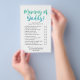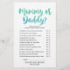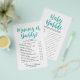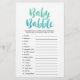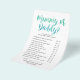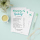 This watercolor calligraphy "baby babble" game is perfect for a summer boys baby shower. The front of the game card features "mummy or daddy?", and the back of the card features "baby babble". The fun and energetic design features a pretty teal green and aqua blue ombre watercolor script font. Personalise the front of the card with the name of the mum-to-be and baby shower date. You can personalise the game questions by clicking the "customise" button.
