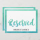 This watercolor calligraphy beach wedding "reserved" sign is perfect for a tropical destination theme wedding. The fun and energetic design features a pretty teal green and aqua blue ombre watercolor script font. Use these cards to reserve chairs or tables at your wedding ceremony or reception. Designed with Care by Miriam at Fresh & Yummy Paperie. For coordinating items, please visit my Zazzle store: