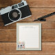 Capture your thoughts and creativity with this beautifully designed notepad, featuring a delicate watercolor illustration of a vintage camera surrounded by flowers with soft hues. This charming combination of art and functionality is perfect for photographers, artists, or anyone who loves to jot down notes in style. Each page offers plenty of room for ideas, to-do lists, notes, reminders etc. Compact and portable, it's the ideal companion for your desk, bag, or workspace. The text on the notepad is customisable and can be easily personalised to suit your needs.