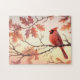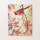 Watercolor Cardinal and Autumn Leaves Jigsaw Puzzle