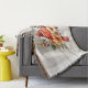 Watercolor Cardinal with Fall Flowers & Plaid Throw Blanket