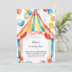 Capture the whimsy and wonder of the circus with our enchanting Circus Dreams birthday invitation card, ready to be personalised just for you. This delightful invitation takes inspiration from the magical world of circuses, featuring captivating illustrations of acrobats, animals, and vibrant circus tents. The design evokes a sense of joy and excitement, setting the stage for an unforgettable birthday celebration