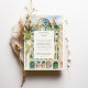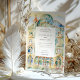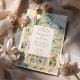 Invite your guests to a truly memorable celebration with this stunning wedding invitation featuring a captivating watercolor illustration of iconic Barcelona architecture, reminiscent of Gaudí's masterpiece Casa Batlló. The front of the card showcases the building's whimsical facade, with its distinctive wavy lines, mosaic-like roof tiles in shades of blue, green, and terracotta, and unique, organic-shaped windows and balconies. The soft, flowing watercolor technique brings the architectural details to life, creating a dreamy and artistic impression against a pale blue sky.