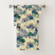 Towel set in a watercolor-style illustration of three black-and-white cats surrounded by lush, vibrant green foliage, with purple and pink flowers. The composition is dreamy and nature-infused, blending realism with fantasy.