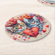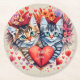 Watercolor cats with heart round paper coaster