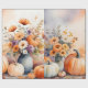 A beautiful autumn scene featuring vibrant pumpkins, surrounded by a collection of whimsical flower arrangements in vases. The background is softly blurred with pastel hues, creating a serene and inviting atmosphere, perfect for celebrating fall. Designed by artist Danguole Serstinskaja