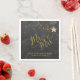 Winter rustic gold typography script Mr and Mrs wedding custom paper napkins featuring a wooden star with a pine bough and watercolor natural brown and green splashes on dark grey chalkboard background. Ideal for your modern night winter elegant rustic country, evergreen or Christmas wedding, woes renewals or anniversaries.
