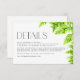 Let your guests know about your event details with this customisable floral wedding details card. It features watercolour chartreuse green fern leaves. Personalise by adding your details. This watercolour greenery details card is perfect for spring and garden weddings.