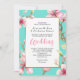 Stylish floral wedding invitation inspired by spring, featuring cherry blossom against turquoise.