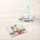 This drink coaster features a digital watercolor illustration of an adorable Chickadee, sitting on a festive lantern adorned with poinsettias and winter greenery, eating some red berries. Adds the perfect touch to your Holiday entertaining.