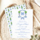 Watercolor Chinoiserie Blue Topiary Monogram Crest Invitation