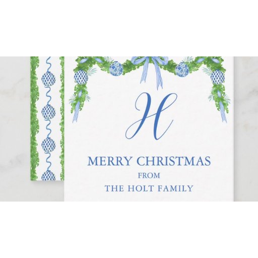Watercolor Chinoiserie Wreath Christmas Monogram Wrapping Paper