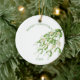 This ceramic Christmas ornament features a watercolor illustration of green mistletoe branches with white berries. The design is printed on a white, circular ceramic base. The text "MERRY CHRISTMAS" is printed in green arc around the top of the ornament, and the year "20XX" is at the bottom. The ornament is perfect for adding a touch of classic, natural holiday cheer to any Christmas tree.