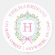 Watercolor Christmas Chinoiserie Monogram Crest Classic Round Sticker