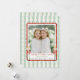 Send holiday cheer with timeless charm in our Watercolor Nutcracker Wishes Christmas photo card. This flat card features a festive border of vertical pale mint green stripes adorned with hand-painted holly leaves and candy canes. Two regal nutcracker soldiers in rich red and green uniforms stand guard at the bottom corners, bringing a touch of classic holiday tradition.