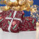 Watercolor green and red Christmas flowers pattern on a maroon background for seasonal gift wrapping. Make your gifts even prettier this year.