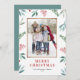 Watercolor Christmas Greenery Frame Photo Holiday Card