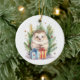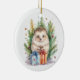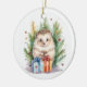 Watercolor Christmas Hedgehog Ceramic Ornament