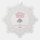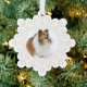 A delicate gold ornate snowflake frame surrounds your favourite photo. The back has text in red that reads "Have a Paw-sitively wonderful Christmas!" This text may be edited by clicking "personalise this template." There is also a place for including your family names and year.