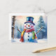 Watercolor Christmas Snowman in Winter Forest Holiday Postcard