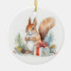 This adorable Christmas ornament features a watercolor illustration of a cute hedgehog with his Christmas gifts on one side, the a place for you to personalise it on the other side.