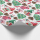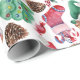 Adorable watercolor Christmas design with gnomes, pine cone, Christmas trees, and other holiday symbols in red and green