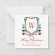 Watercolor Christmas Topiary Monogram Crest Card