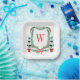 Watercolor Christmas Topiary Monogram Crest Paper Plate
