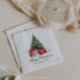 This design features a beautiful watercolor Christmas tree with red packaged Christmas gifts and simple elegant script.