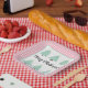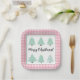 This adorable Christmas square paper plate features an assortment of whimsical, pastel Christmas trees on pink plaid background and says "Merry Christmas" (or personalise to a name or different phrase).